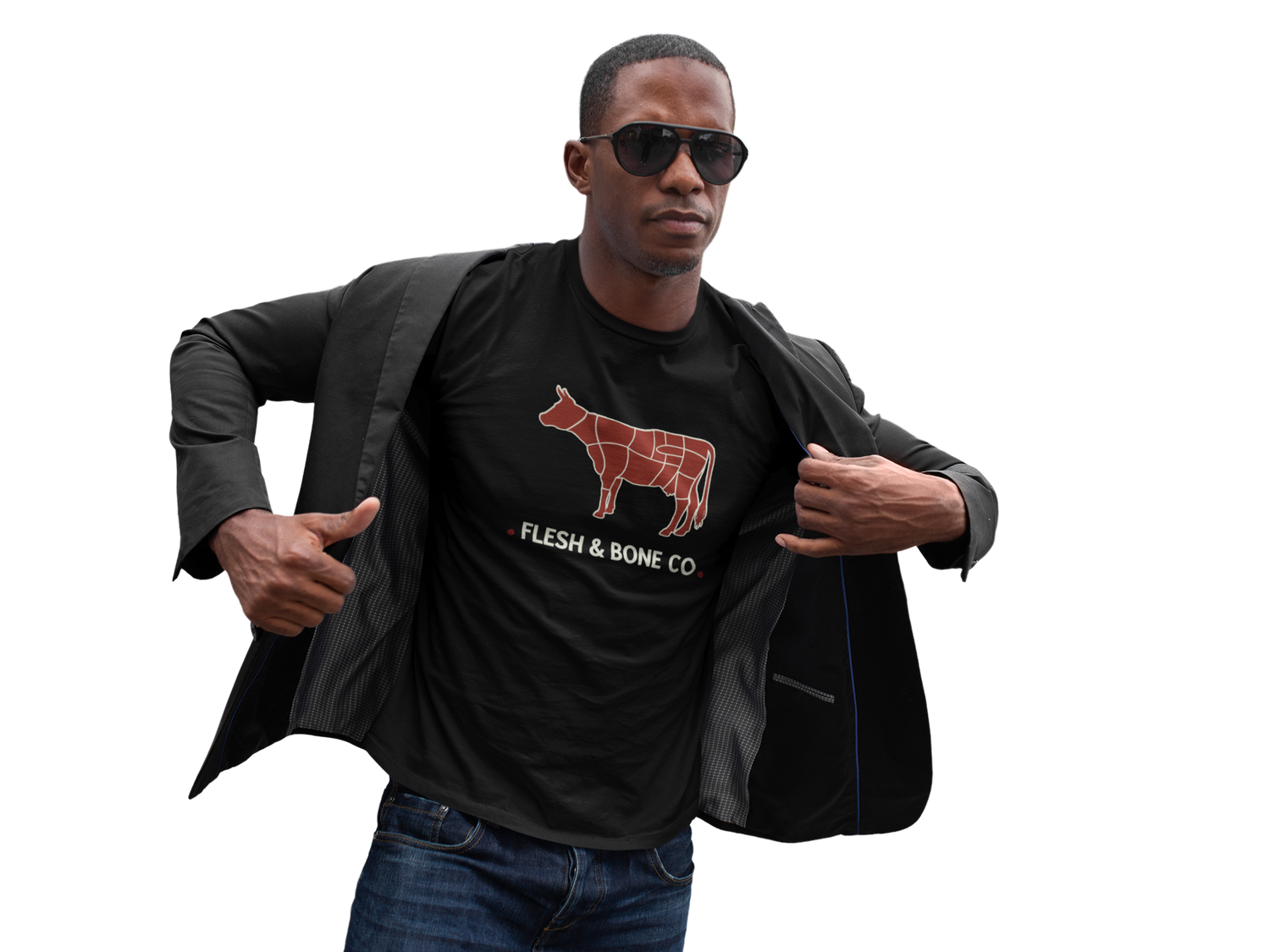 At Flesh and Bone Co., we create apparel for those who reject the modern American diet. The one engineered by corporations, endorsed by the government, and blindly consumed by the masses. This brand is for the carnivores, the builders, the relentless. The ones who fuel their bodies with meat and their lives with intention. We don’t follow their charts. We don’t buy into their food pyramid. And we refuse to settle for carb-soaked submission. Our gear isn’t about fitting in. It’s about standing for something primal, raw, and unapologetically human. Fork the veggies. Fork the system. We were made for more...and we're just getting started.