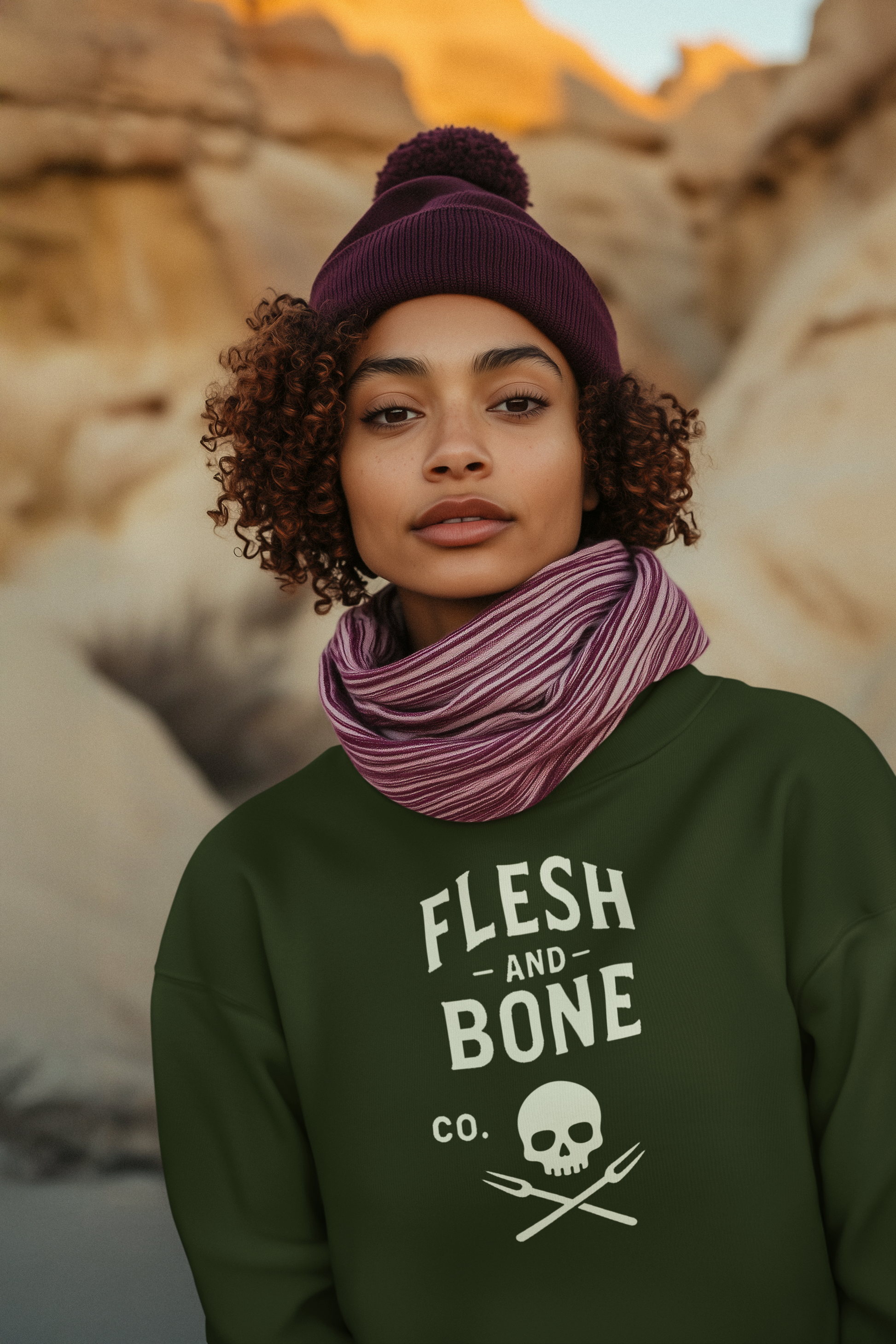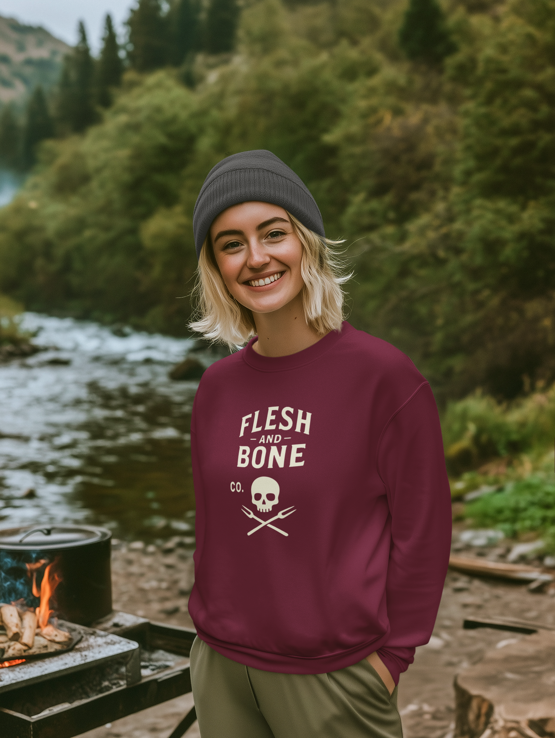 This sweatshirt features our signature logo — the skull, the forks, the name — printed front and center as a quiet statement of clarity and strength. For the women who’ve felt the shift and live like they mean it.